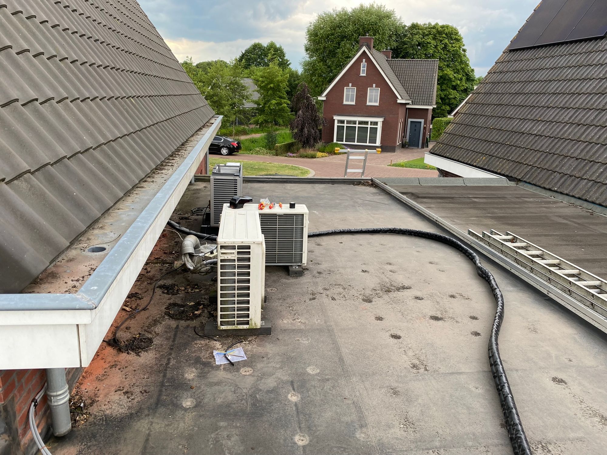 Uiteindelijk zijn ze om 15.00 daadwerkelijk gearriveerd, met 4 man sterk werd gelijktijdig de bestaande CV installatie voorbereid, de doorvoer door de muur gerealiseerd, de Quatt voorbereid en de plaatsing op het dak voor de warmtepomp zelf gedaan.