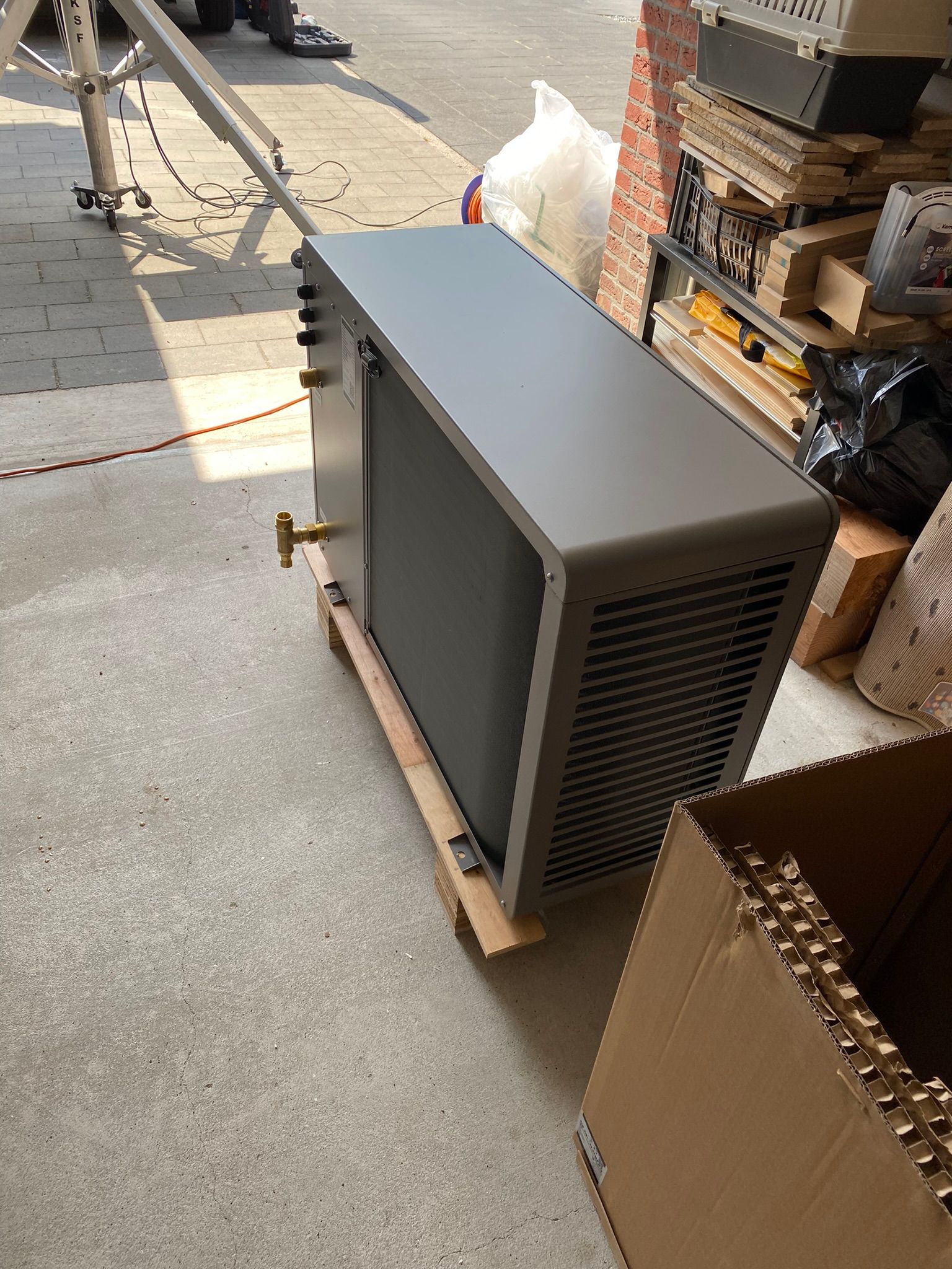 Ongeveer drie dagen voor de plaatsing zal er een pallet geleverd worden met de warmtepomp en alle benodigde installatiematerialen. Deze pallet dien je droog weg te zetten, in ons geval geen probleem, maar ik kan met voorstellen dat er situaties zijn waarbij dat best een uitdaging kan zijn.
